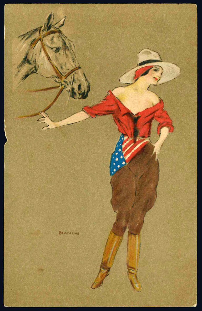 - BIANCHI. Donna USA con cavallo;