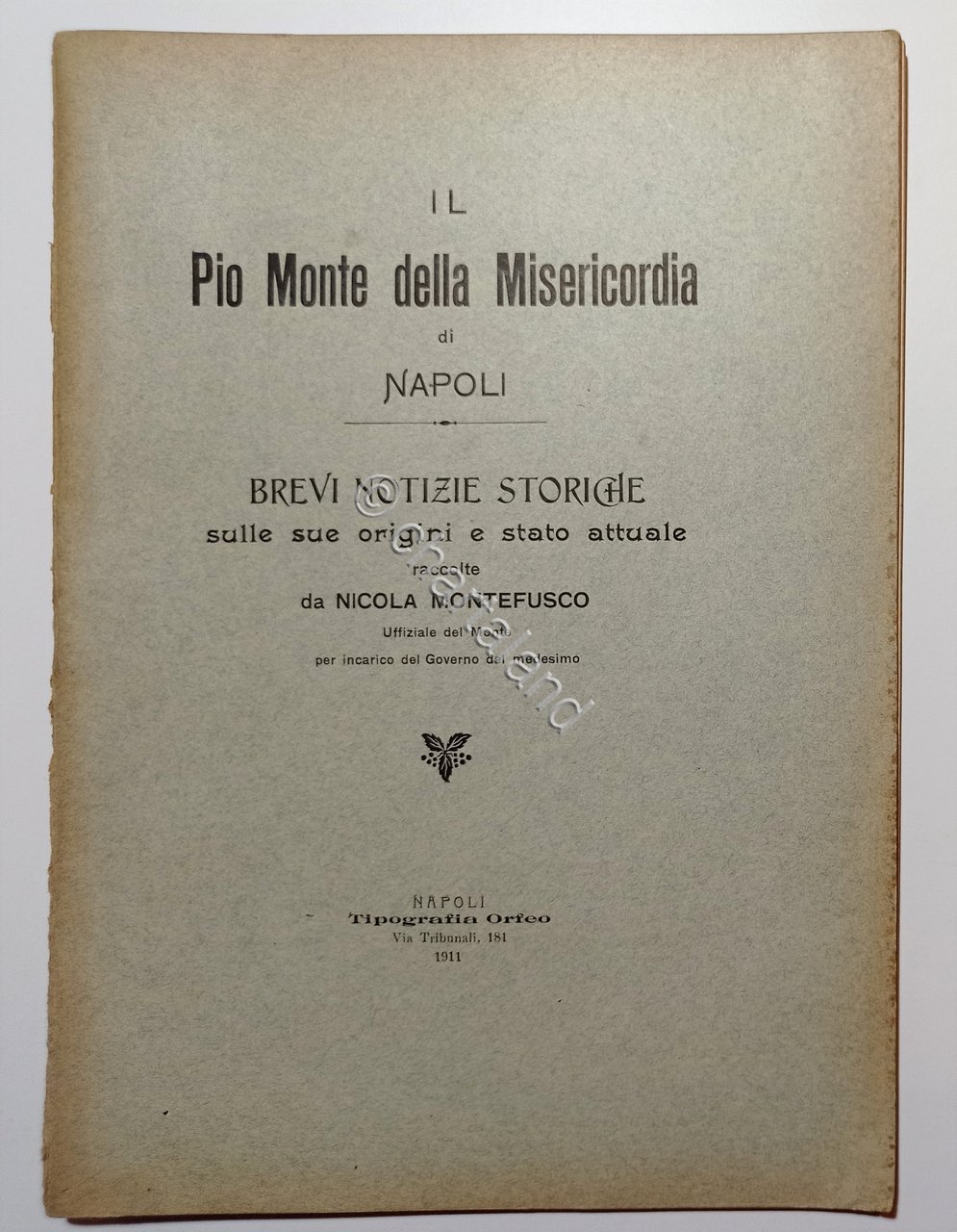 N. Montefusco - Pio Monte della Misericordia Napoli: brevi notizie storiche sulle sue origini e stato attuale - ed. 1931 Testo in lingua italiana. Pagine 58 Copertina morbida. Condizioni molto buone.