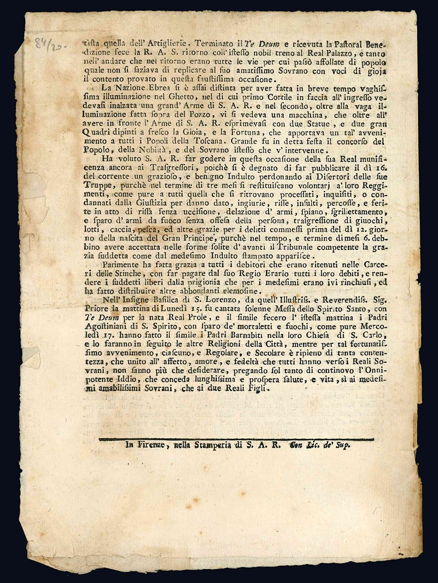 Narrazione di tutto ciò che è stato fatto in Firenze in occasione della nascita di S.A.R. il Serenissimo Arciduca Francesco Giuseppe Carlo Giovanni Gran Principe di Toscana