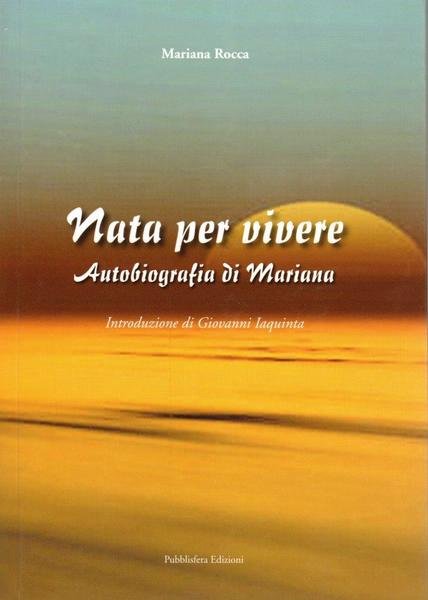 Nata per vivere. Autobiografia di Mariana, prima edizione maggio 2008, pp. 167, formato 15 x 21.<BR>Copertina morbida illustrata con titoli in bianco al piatto anteriore e sul dorso. Introduzione di Giovanni Iaquinta.<BR>Ottime condizioni. <BR>