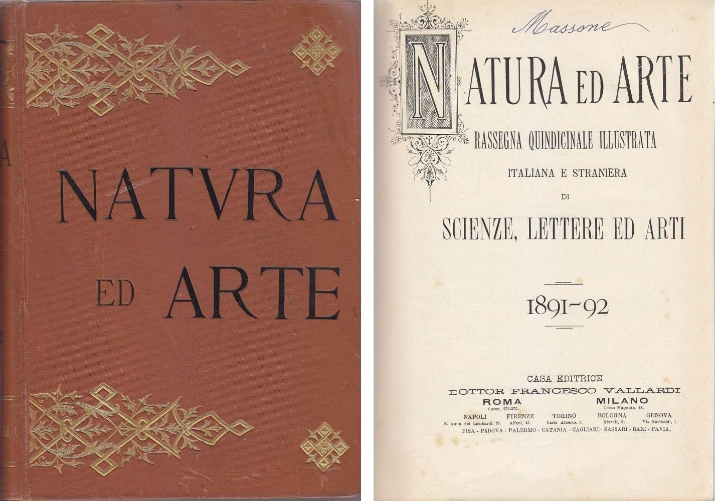Natura Ed Arte Scienza Lettere Ed Arti 1891 1892 Francesco Vallardi libro antico
