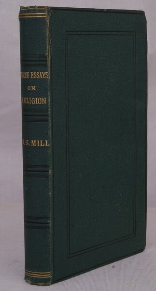 8vo., First Edition, blank preliminary lightly spotted; original green pebble-grain cloth, sides with triple frame border in black, backstrip lettered in gilt and ruled in gilt and black, chocolate endpapers, top lightly spotted, short split in upper joint (but binding entirely sound) else a remarkably bright, fresh copy. With backstrip and half-title lettered 'Three Essays on Religion', and 2pp of publisher's advertisements at rear. First edition of Mill's final published work, issued posthumously in the year after his death with an introduction by his step-daughter.