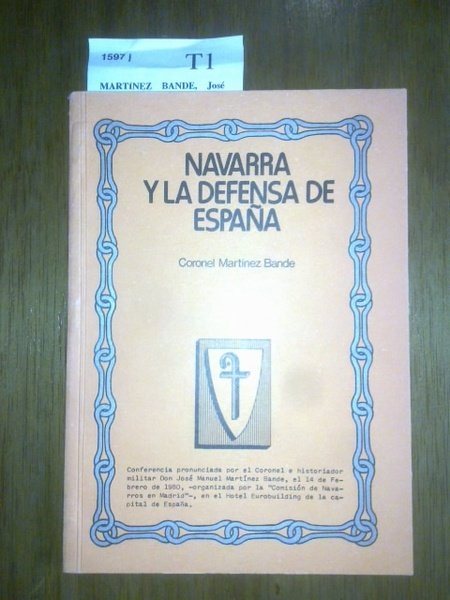 MARTÍNEZ BANDE, José Manuel Navarra y la defensa de España Sancho el Fuerte 1981 24 p. (21 cm) Folleto Conferencia pronunciada por el coronel e historiador militar Don --- , el 14 de febrero de 1980, - organizada por la “Comisión de Navarros en Madrid”-, en el Hotel Eurobuilding de la capital de España. W (Ref.1597) navarra militar historia general