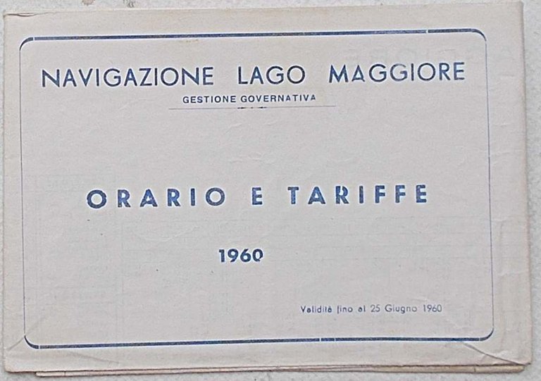 Navigazione lago Maggiore. Orario e tariffe 1960.