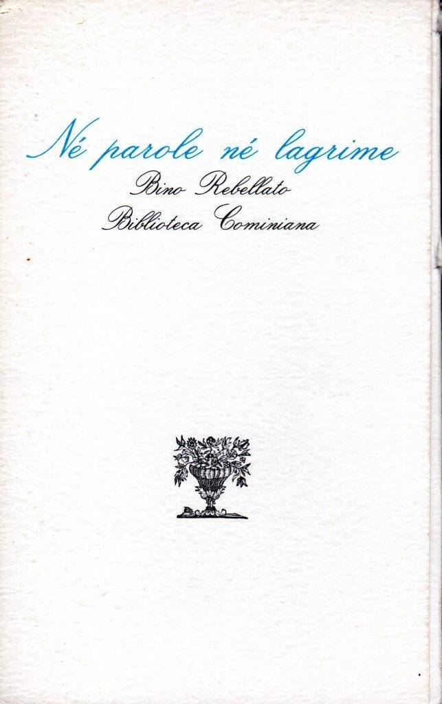 Né parole né lagrime, prima edizione 1993, pp. 29, formato 10 x 16,5.<BR>Copertina morbida di colore bianco con titoli in nero e blu al piatto anteriore. Volume non rilegato.<BR>Volume con piccole mancanze sul dorso . Nel complesso buone condizioni.