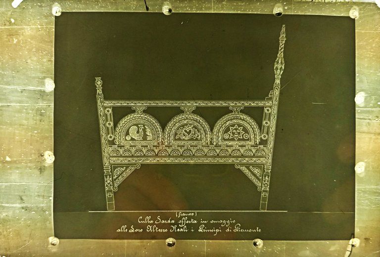 negativo su lastra di vetro con culla sarda