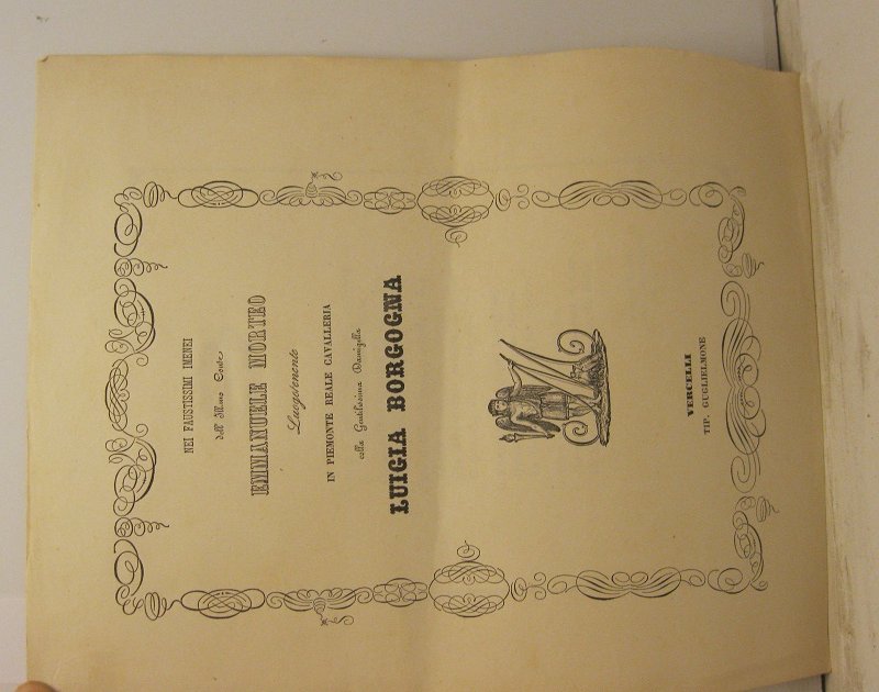 Nei faustissimi imenei dell'ill.mo conte Emmanuele Morteo luogotenente in Piemonte Reale Cavalleria colla gentilissima damigella Luigia Borgogna