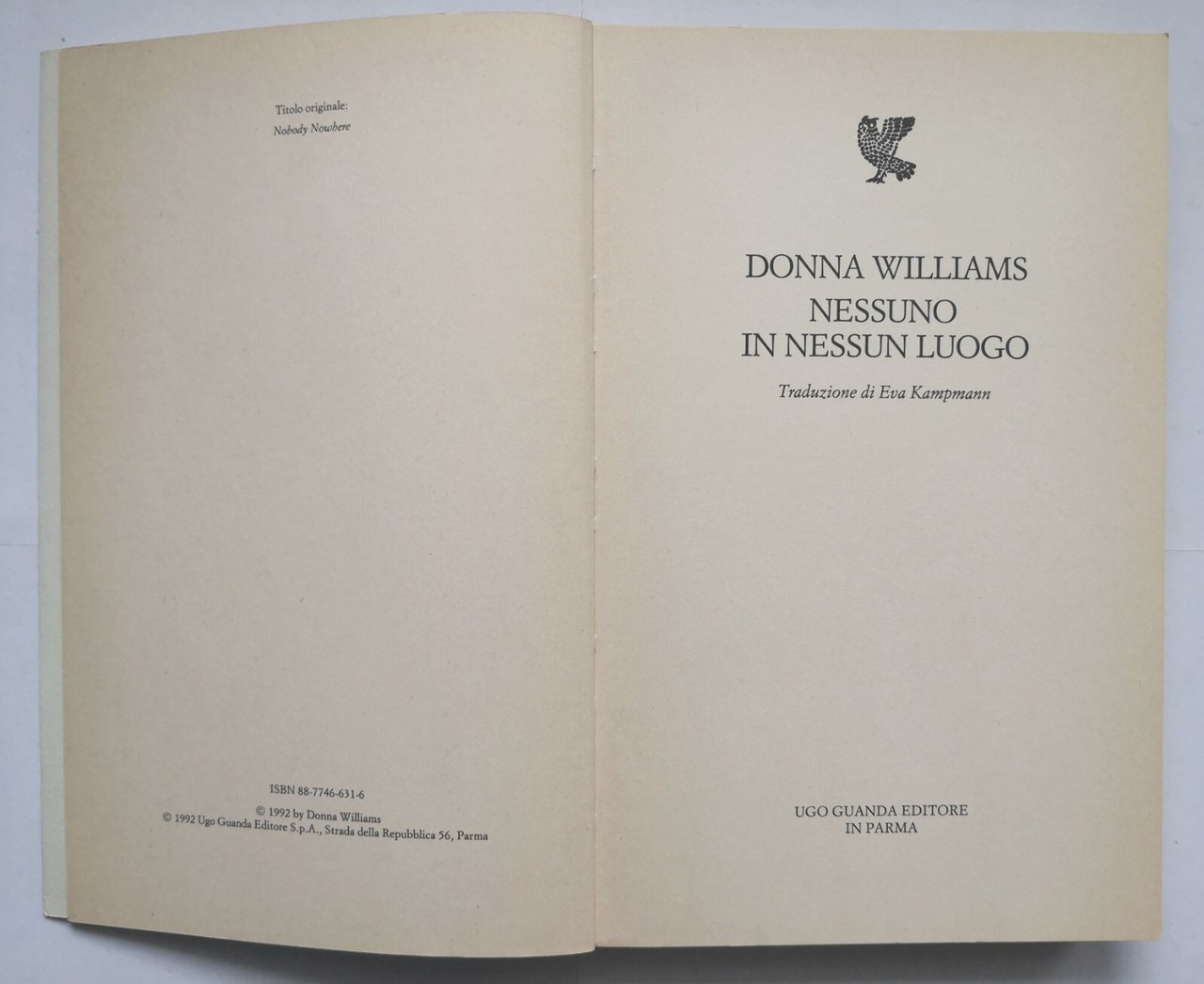 NESSUNO IN NESSUN LUOGO di Donna Williams 1992 Guanda Libro narratori fenice