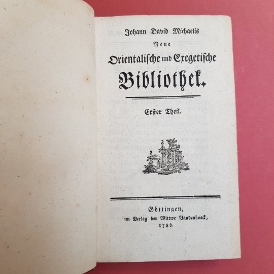 Neue orientalische und Exegetische Bibliothek. Teile 1-6 e Orientalische und Exegetische Bibliothek teile 7-8, 15-16, 19-20. Frankfurt am Mann, 1774.