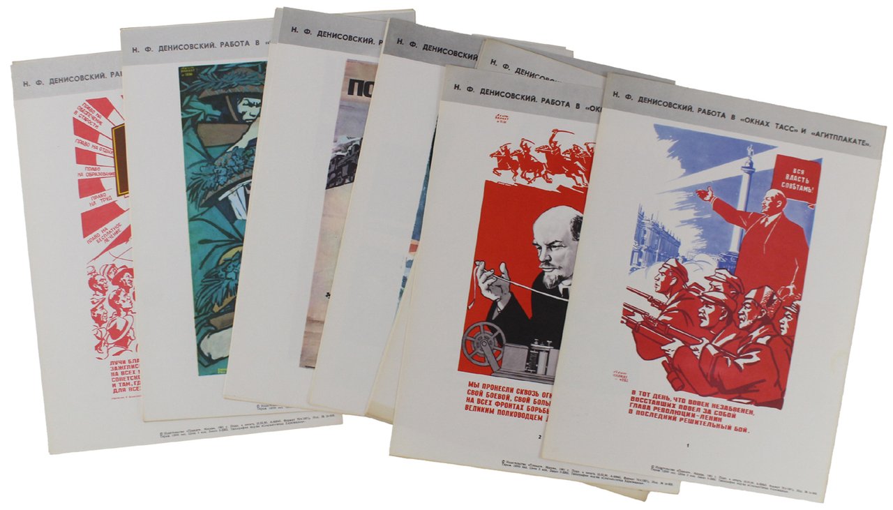 NIKOLAI FEDEROVICH DENISOVSKII Rabota v "OKNAX TASS" I "AGITPLAKATE" [full collection of 18 plates, russian text]