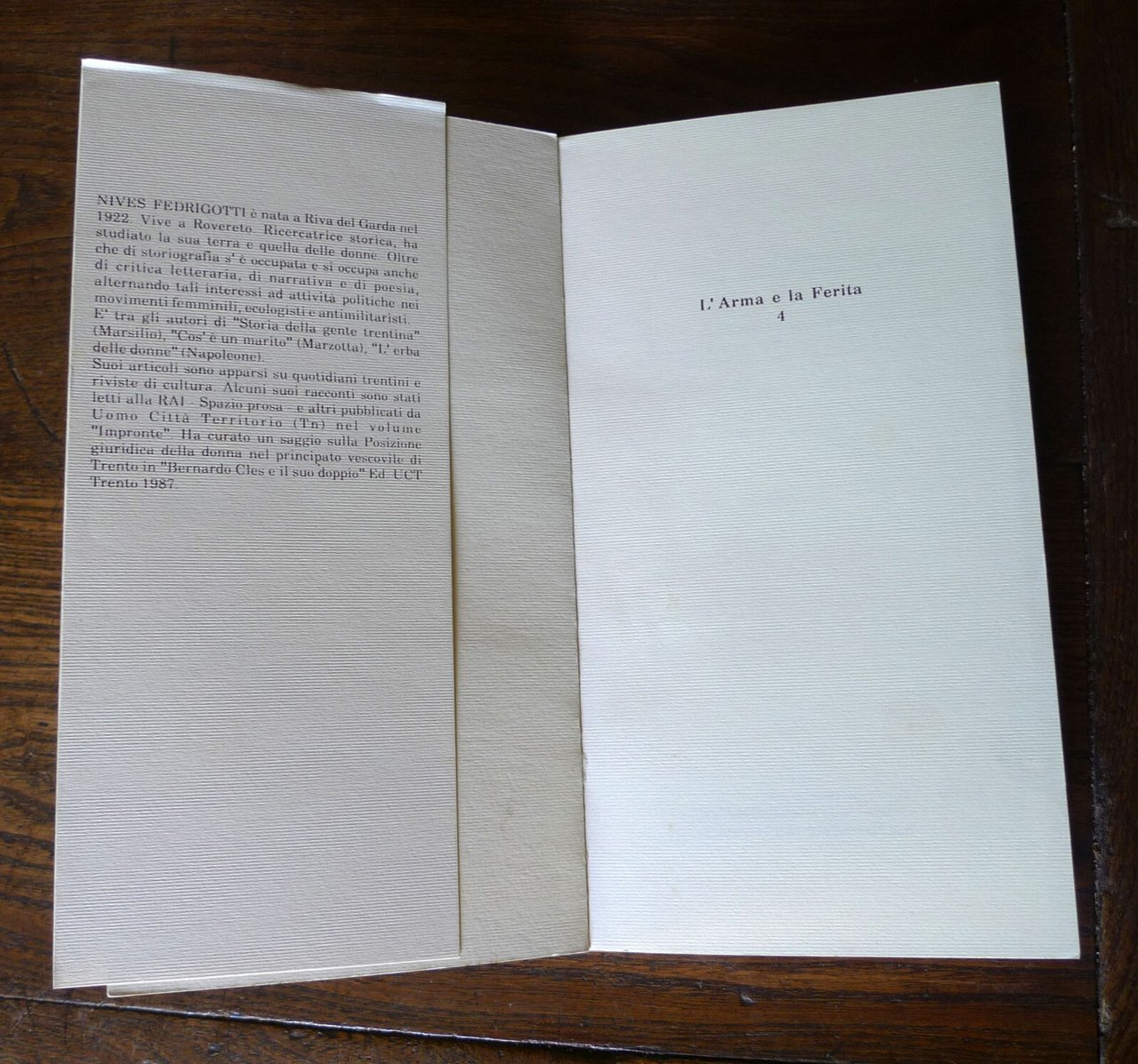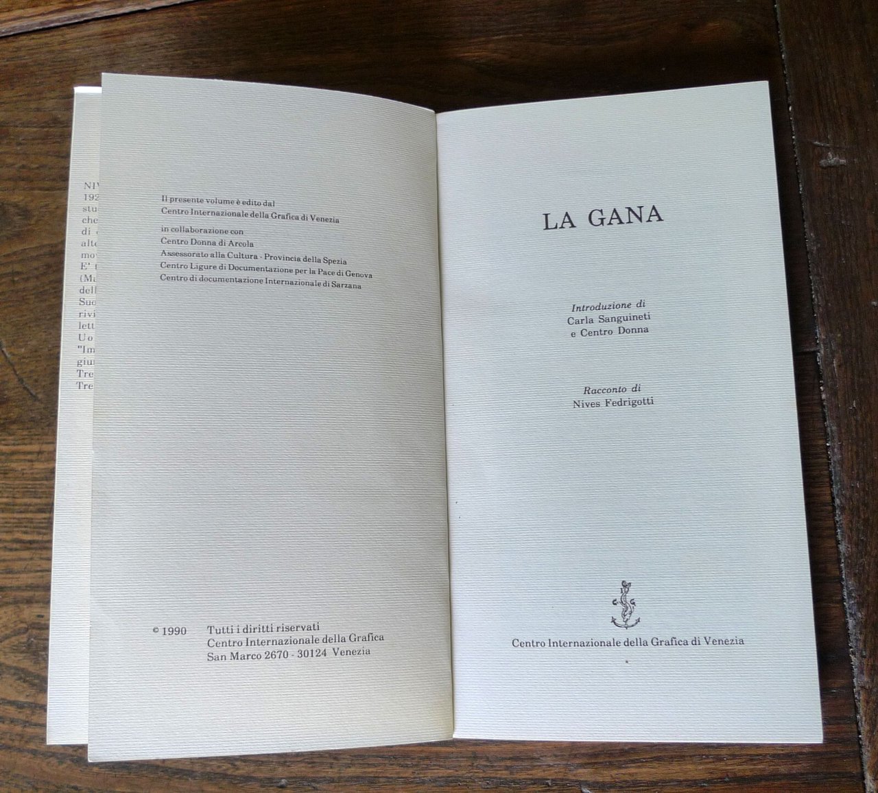 Nives Fedrigotti,LA GANA.Introduzione di Carla Sanguinetie Centro Donna.Racconto di Nives Fedrigotti.Centro Internazionale della Grafica di Venezia,Venezia 1990,brossura con sovraccoperta, 22,5x12 cm., pp.108,illustrazioni in bianco e nero,L'ARMA E LA FERITA / 4,peso: g.300cod.9479CONDIZIONI DEL LIBRO: ottime, come nuovo