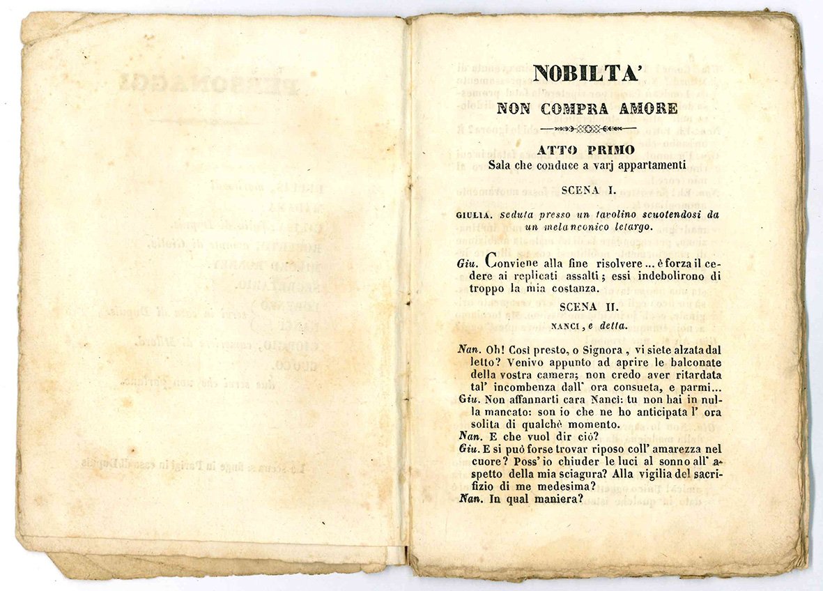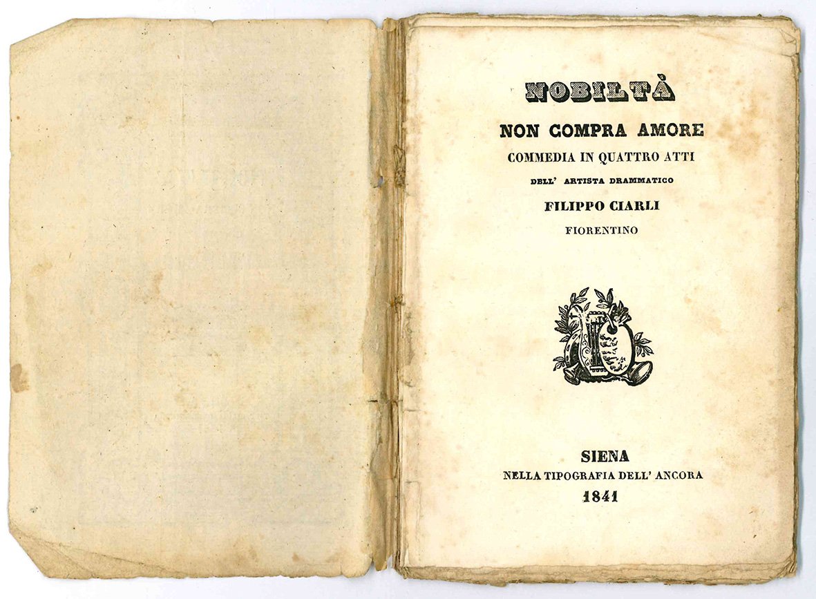 Commedia dell'attore e capocomico fiorentino Filippo Ciarli, figlio d'arte vissuto nella prima metà dell'800. Raro. Non censito in ICCU.