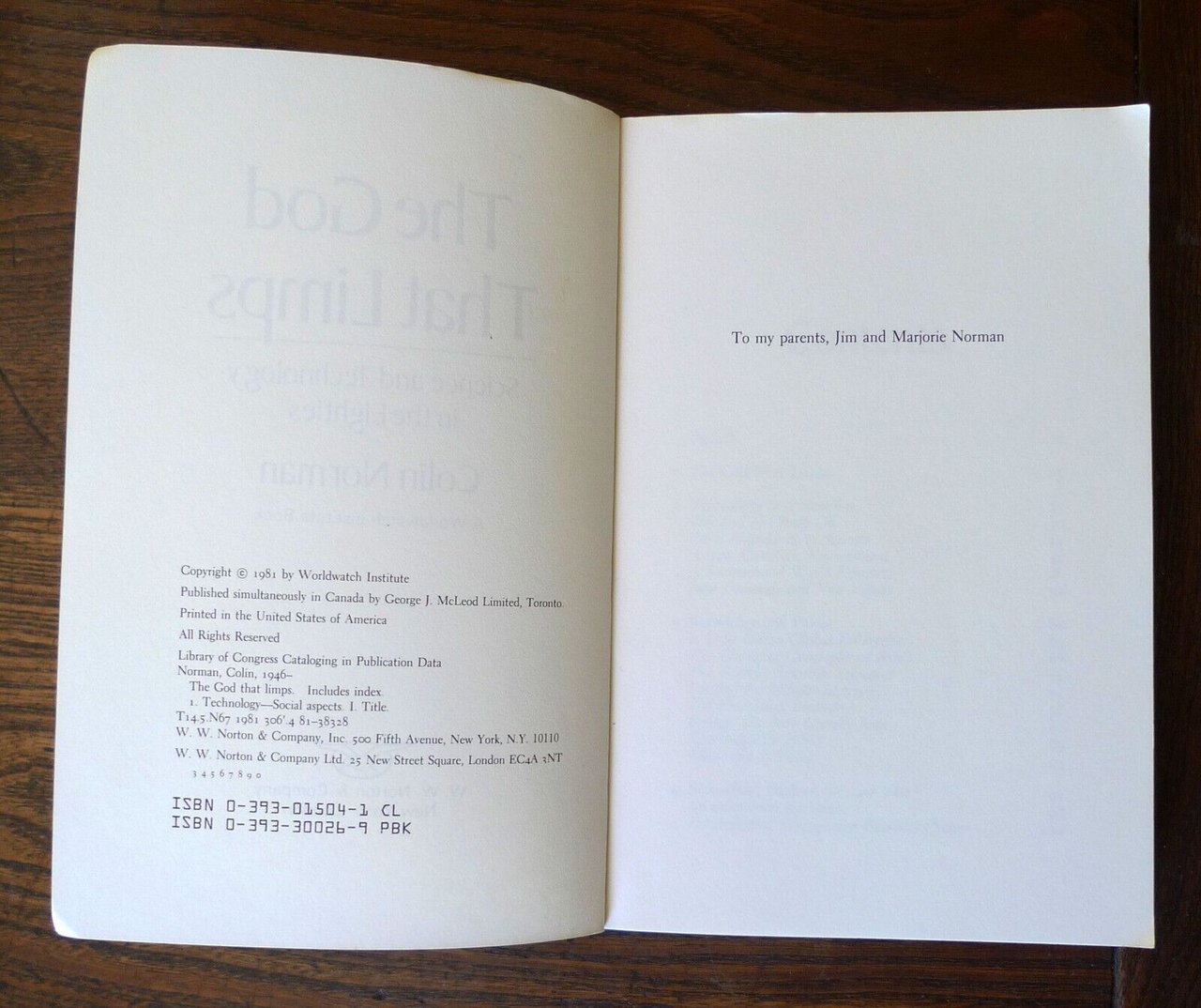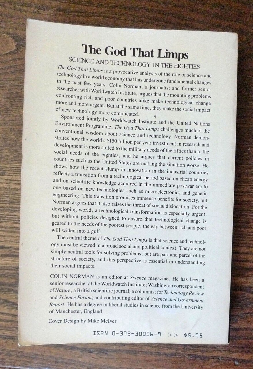 Colin Norman,THE GOD THAT LIMPS.SCIENCE AND TECHNOLOGY IN THE EIGHTIES.W. W. Norton & Company, New York London 1981,brossura, 21x14 cm., pp.224,testo in inglese,ISBN: 0-393-30026-9,peso: g.350