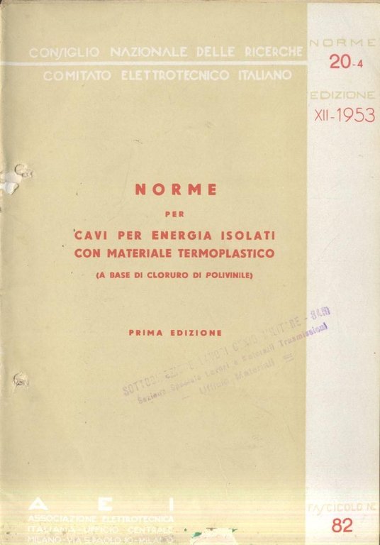NORME CAVI ENERGIA ISOLATI MATERIALE Termoplastico Cloruro 1957 Libro ingegneria