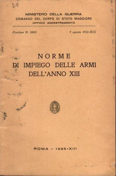 "Norme di impiego delle armi dell'anno XIII", edizione 1935, pp. 23, formato 12 x 18.