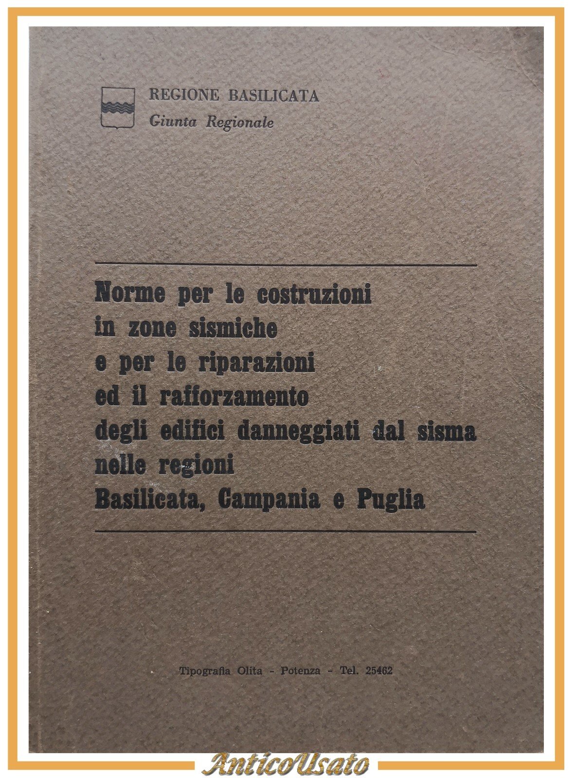 NORME PER LE COSTRUZIONI IN ZONE SISMICHE E PER LE PIPARAZIONI ED IL RAFFORZAMENTO DEGLI EDIFICI DANNEGGIATI DAL SISMA NELLE REGIONI BASILICATA, CAMPANIA E PUGLIA.