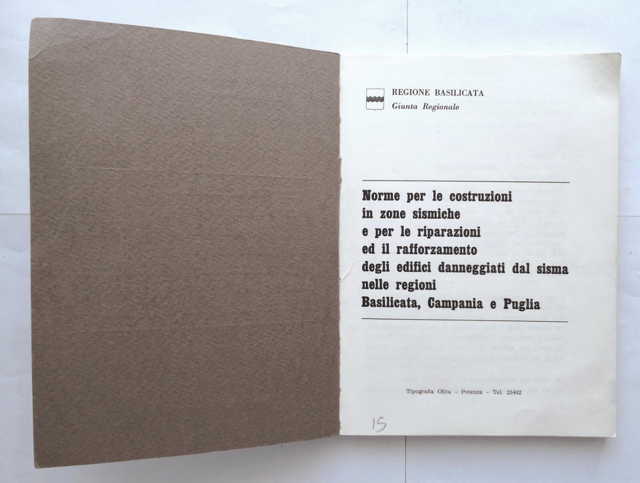 NORME PER LE COSTRUZIONI IN ZONE SISMICHE Regione Basilicata 1981 terremoto