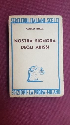 In-8°, pp. 445, brossura editoriale. Esemplare intonso. Collana «Scrittori italiani scelti». Prima edizone. Scrittore (Milano 1874 - ivi 1956). Esordì con una poetica ancora legata al classicismo leopardiano e carducciano (Rapsodie leopardiane, 1898), ma attratto dal movimento futurista, ne divenne uno degli esponenti più serî e significativi (fu, tra l'altro, critico letterario della rivista Poesia fondata nel 1905 da Marinetti). 'Nostra Signore degli abissi' è un' «Esaltazione di Milano e della sua storia» Gambetti Vezzosi p. 92; Cammarota, Futurismo, 68.30