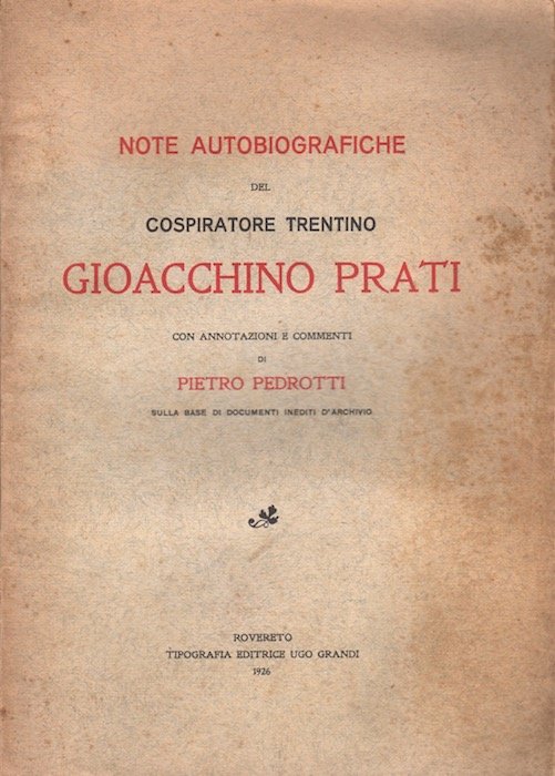 VIII, 212 p., [1] c. di ritr., 25 cm, bross. Condizioni : USATO - Stato : Esemplare medio, slegato, con strappi e piccole mancanze al dorso. Qualche macchia alla coperta. Intonso. Altre note : G. Prati nacque a Stenico il 26 gennaio 1790 e morì a Brescia il 31 gennaio 1863.