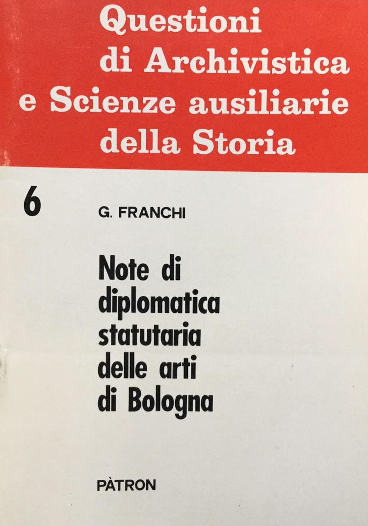 Bologna, Patron, 1976, in 8vo, Brossura editoriale, 34 pp., Coll. Questioni di Archivistica e Scienze ausiliarie della Storia, 6. 020 -P In Ottavi (15-23cm ) Ottimo (Fine) Ottimo