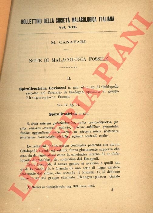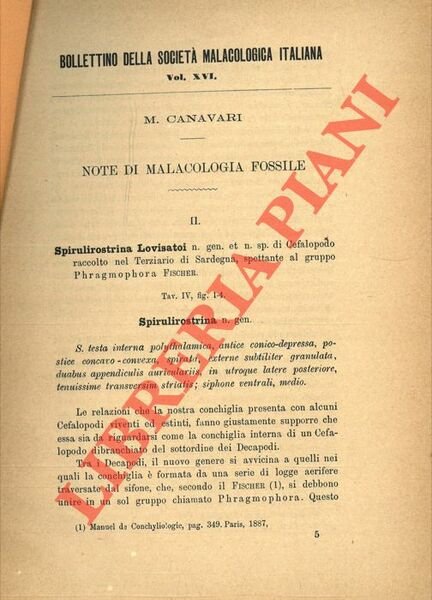 Pisa, SMI, 1892, stralcio cop. muta, stralcio di, pp. 65/73 + 1 tav. litogr.(Vol. XVI del "Bullettino della Società Malacologica Italiana.") - ! ATTENZIONE !: Con il termine estratto (o stralcio) intendiamo riferirci ad un fascicolo contenente un articolo, completo in se, sia che esso sia stato stampato a parte utilizzando la stessa composizione sia che provenga direttamente da una rivista. Le pagine sono indicate come "da/a", ad esempio: 229/231 significa che il testo è composto da tre pagine. Quando la rivista di provenienza non viene indicata é perché ci è sconosciuta. - ! ATTENTION !: : NOT A BOOK : “extract” or “excerpt” means simply a few pages, original nonetheless, printed in a magazine. Pages are indicated as in "from” “to", for example: 229/231 means the text comprises three pages (229, 230 and 231). If the magazine that contained the pages is not mentioned, it is because it is unknown to us.