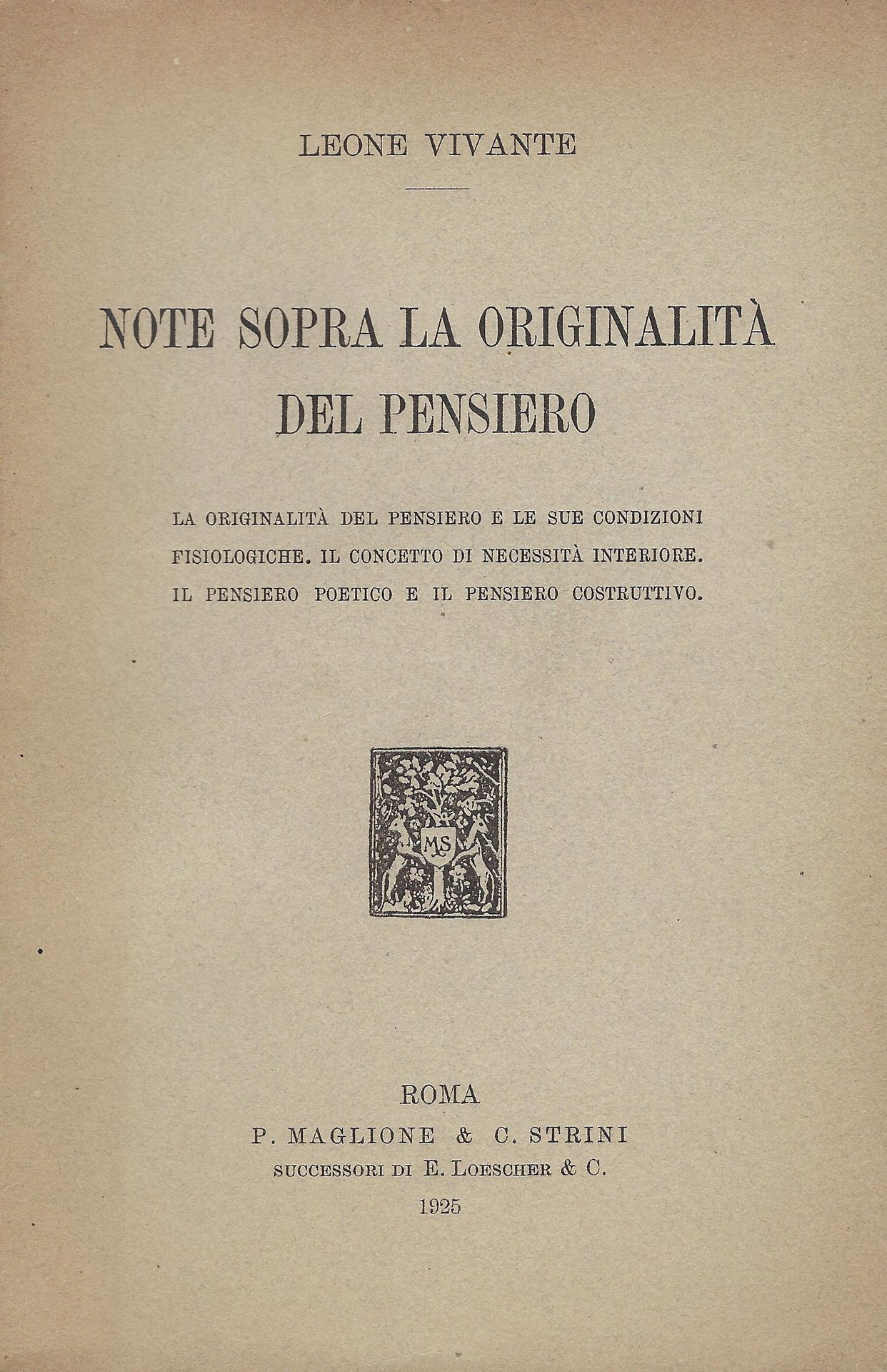Note sopra la originalita del pensiero : la originalita del pensiero e le sue condizioni fisiologiche [...]