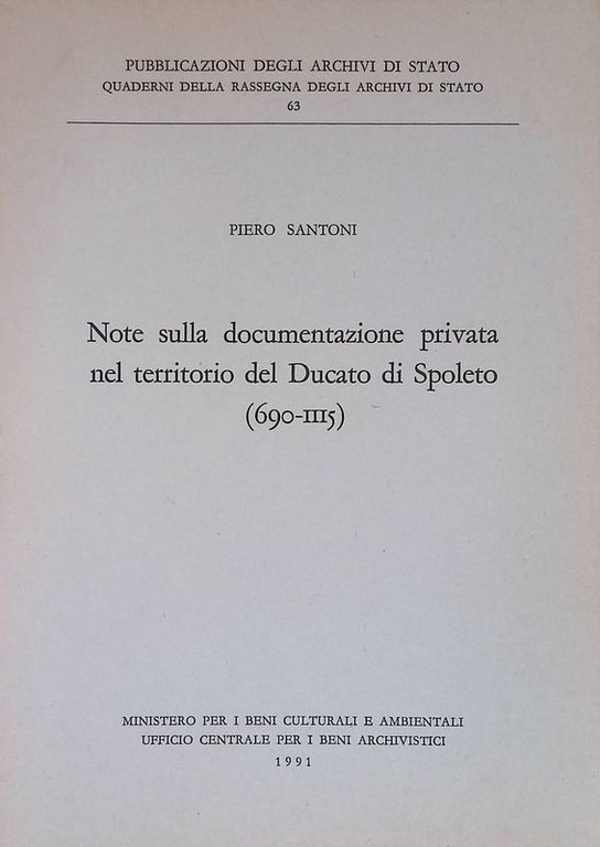 Note sulla documentazione privata nel territorio del Ducato di Spoleto (690-III5)