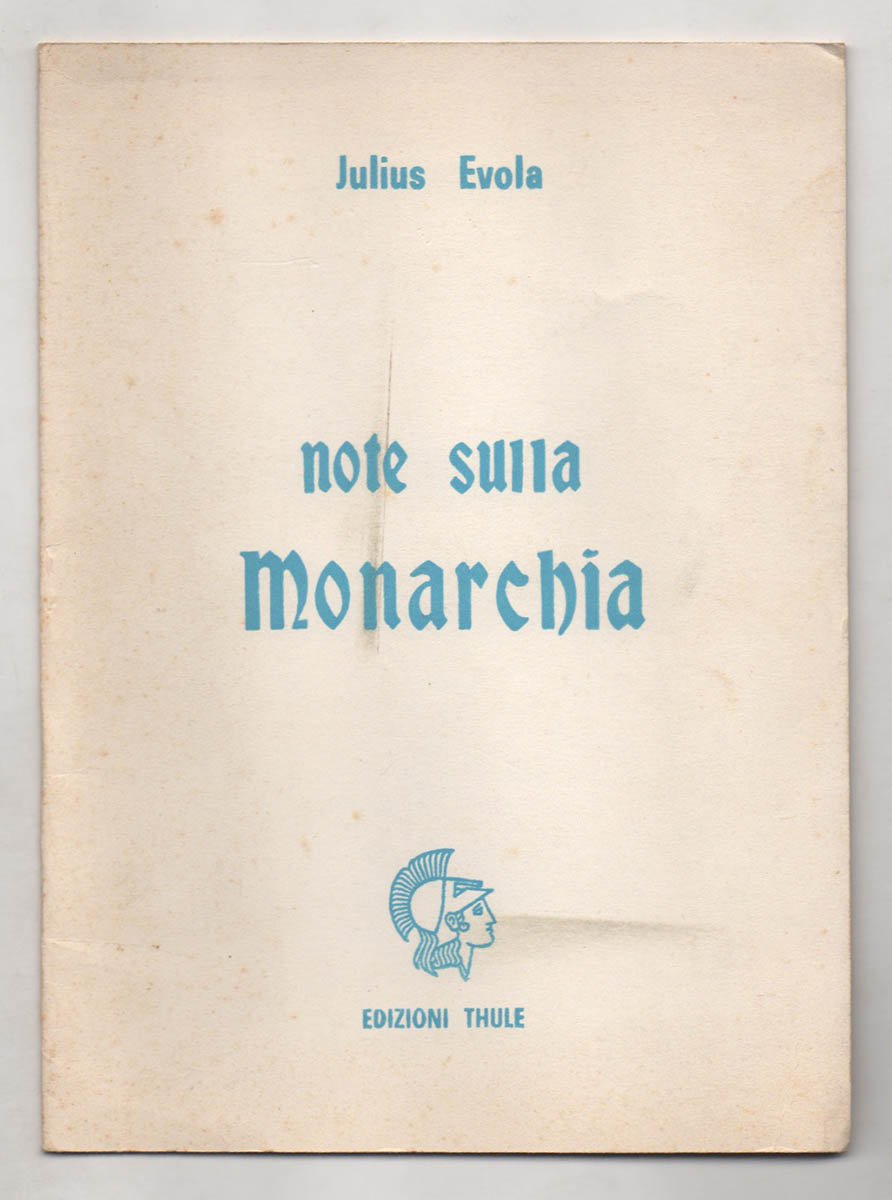 LIBROPrima edizione in volume.Ottimo esemplare.Rarissimo opuscolo che stampa due saggi apparsi sulla rivista «Monarchia» nel 1956, ripubblicati su autorizzazione dello stesso Evola; «Mistica della monarchia» era apparso ad aprile sul primo numero del periodico, «La monarchia e la camera alta» nel secondo (ed ultimo) a maggio - giugno. Lo stesso Evola scrisse che «della rivista, cui diedi volentieri il mio aiuto, non uscì che un paio di numeri, perché essa si trovò dinanzi a un dilemma: tenersi alla linea fissata, senza deflettere, e allora non ottenere finanziamenti; ovvero ottenere finanziamenti, ed allora passare al servigio di interessi di politicanti» («Il cammino del cinabro», Scheiwiller, Milano, 1963, pagina 69). Presente in sole 3 biblioteche nel catalogo SBN, compare estremamente raramente sul mercato.