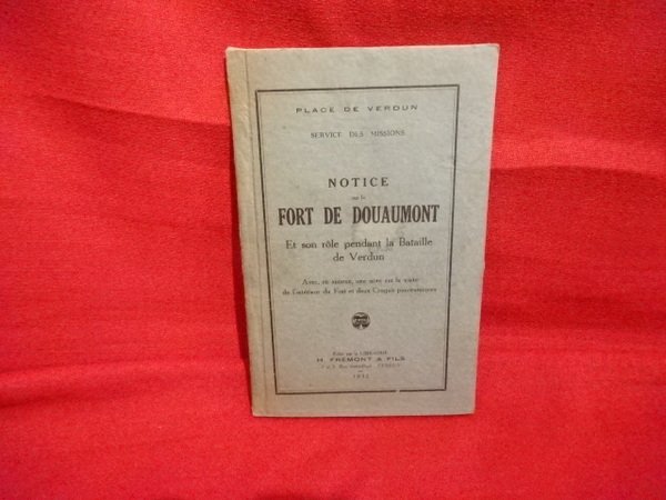 Verdun, Librairie H. Frémont & Fils, 1932; in-12 (113 x 174 mm), 22 pp. + 2 pl. et 2 pl. dépliantes hors-texte, cartonnage d'éditeur. Place de Verdun, Service des Missions, avec, en annexe, une note sur la visite de l'intérieur du Fort et deux croquis panoramiques.