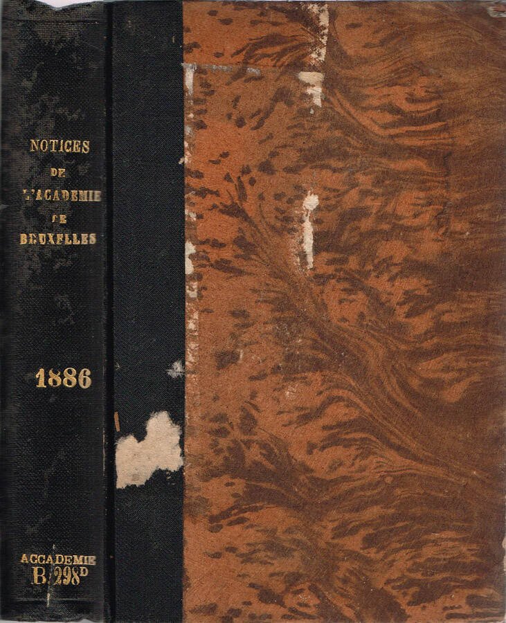 Anno 1886 della collana Notices Biographiques et Bibliographiques. Volume intonso della seconda metà dell'800 in stato discreto, coperta in mezzatela con angoli, piatti marmorizzati, caratteri incisi in oro sul dorso, alcuni segni del tempo, fioritura sparsa, tagli bruniti con barbe, pagine in buono stato, margini leggermente ambrati. Il rilegatore ha mantenuto all'interno del volume i piatti originali, in cartoncino, su piatto anteriore, con bella cornice in nero, catalogazione bibliotecaria manoscritta, abrasione, bruniture. Numero Pagine 606