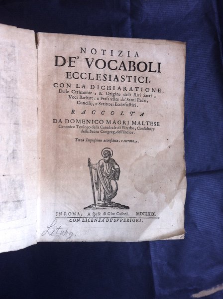 Notizia de’ vocaboli ecclesiastici con la dichiaratione delle cerimonie e origine delli riti sacri, voci barbare e frasi usate da santi padri.