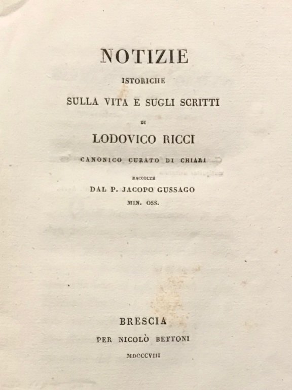 Notizie istoriche sulla vita e sugli scritti di Lodovico Ricci canonico curato di Chiari.