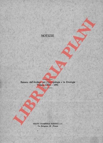Firenze, Nuova stamperia Parenti, 1991, estratto con copertina originale, pp. 299/307 con illustrazioni in nero e a colori. - ! ATTENZIONE !: Con il termine estratto (o stralcio) intendiamo riferirci ad un fascicolo contenente un articolo di rivista, sia che esso sia stato stampato a parte utilizzando la stessa composizione sia che provenga direttamente da una rivista. Le pagine sono indicate come "da/a", ad esempio: 229/231 significa che il testo è composto da tre pagine. Quando la rivista di provenienza non viene indicata é perchè ci è sconosciuta. - ! ATTENTION !: : NOT A BOOK : “estratto” or “stralcio” means simply a few pages, original nonetheless, printed in a magazine. Pages are indicated as in "from” “to", for example: 229/231 means the text comprises three pages (229, 230 and 231). If the magazine that contained the pages is not mentioned, it is because it is unknown to us.