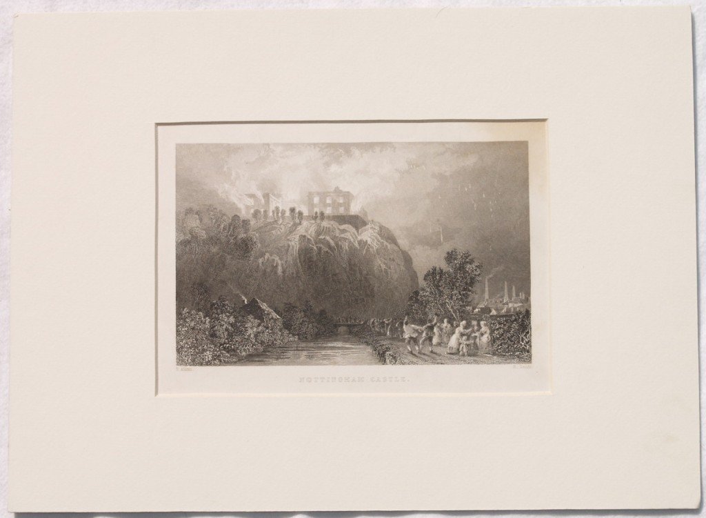 Splendida incisione su acciaio del 1832, che mostra una veduta del Castello di Nottingham, Inghilterra. L'incisione è montata in un elegante passepartout INCISIONE: Incisione su acciaio AUTORE: Robert Sands (1792-1855) DIMENSIONI PASSEPARTOUT: cm 30x22 DIMENSIONI INCISIONE: cm 17x12 EPOCA: 1832 CONDIZIONI: buone; scritte nella parte posteriore del passepartout. Faboulous steel engraving of 1832 by Robert Sands, representing the Nottingham Castle. It is in an elegant passe-partout. ENGRAVING: steel engraving AUTHOR: Robert Sands (1792-1855) PASSE-PARTOUT DIMENSION: cm 30x22 ENGRAVING DIMENSION: cm 17x12 DATE: 1832 CONDITIONS: Good, writings in the back part of the engraving