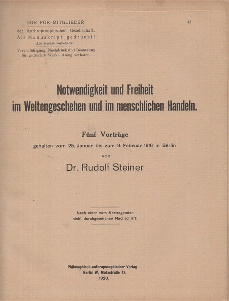 Fünf Vorträge gehalten vom 25 Januar bis zum 8 Februar 1916 in Berlin. Ritagliato il nome del proprietario all'angolo superiore destro della guardia e del frontespizio