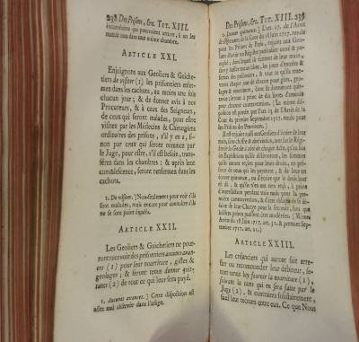 A Paris, chez Debure l’aïné, 1756. In/12 reliure plein veau du temps, dos à nerfs à caissons dorés et pièce de titre, 59 f., 694 pages, 1 f. Petit manque en coiffe inférieure, bords et coins usés mais excellent état de fraîcheur des feuillets. Daniel Jousse (1704 - 1781) : éminent pénaliste, il est l'un des plus importants commentateurs des ordonnances et édits du XVIIe siècle.