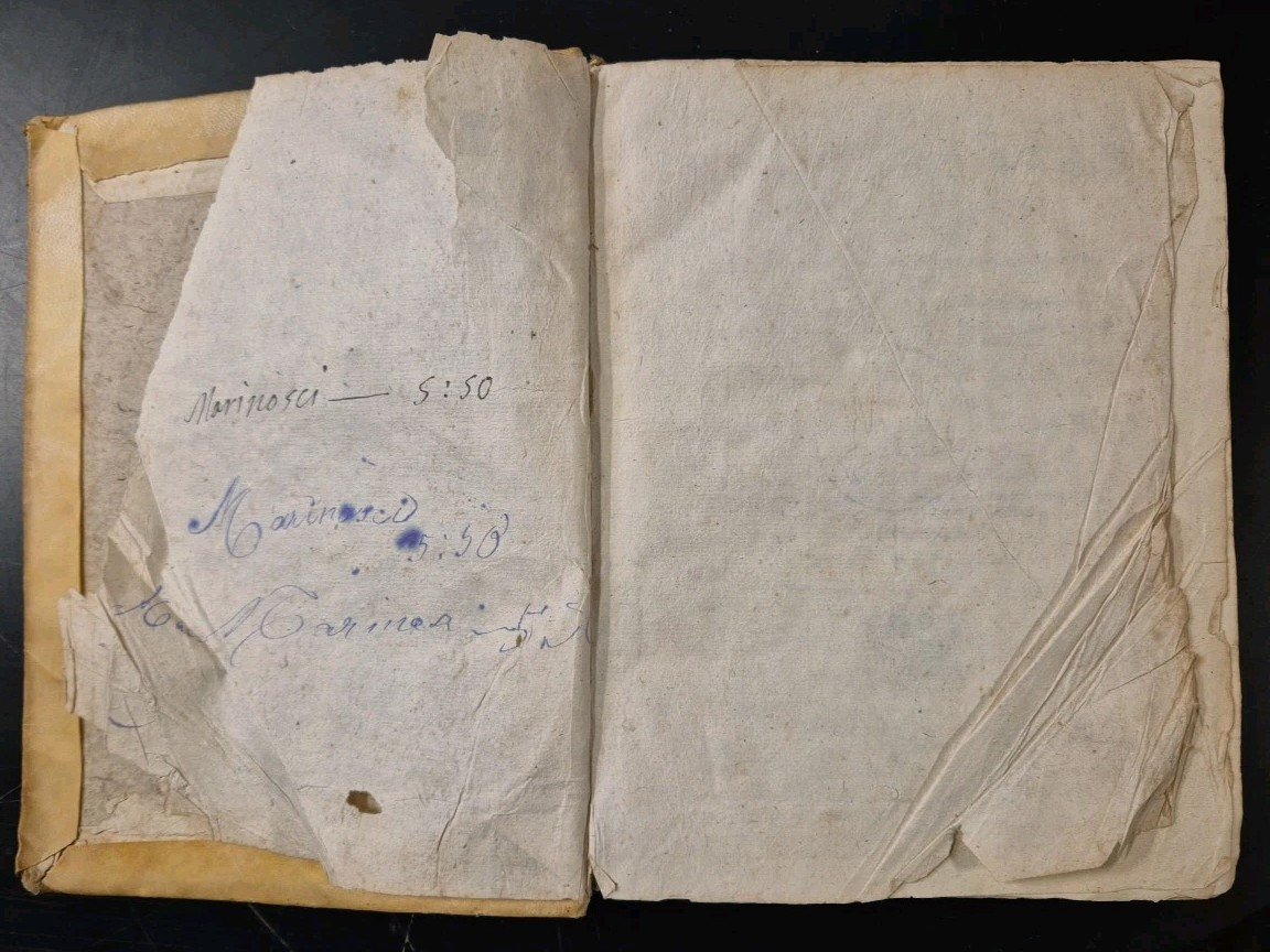 Copertina coeva in tutta pergamena con tassello al dorso.