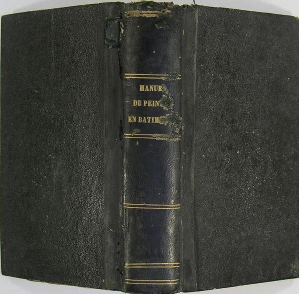 Encyclopédie Roret, Paris, 1851. In/12 reliure demi-basane, couverture imprimée, 2 planches rempliées in-fine, 399 p. Nouvelle édition , entièrement refondue et ornée de figures par Toussaint de Sens.Reliure épidermée, auréole sur la fin du volume. Peinture d'enseignes, vitrerie, papiers de tenture, restauration de tableaux : rentoilage, transposition de gravures .