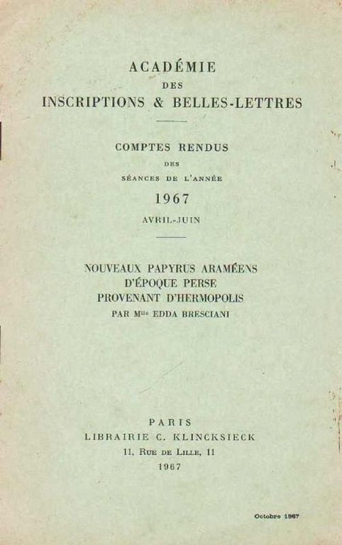 - Librairie C. Klincksieck (Estratto da Académie des Inscriptions, & Belles-Lettres. Compte Rendu).