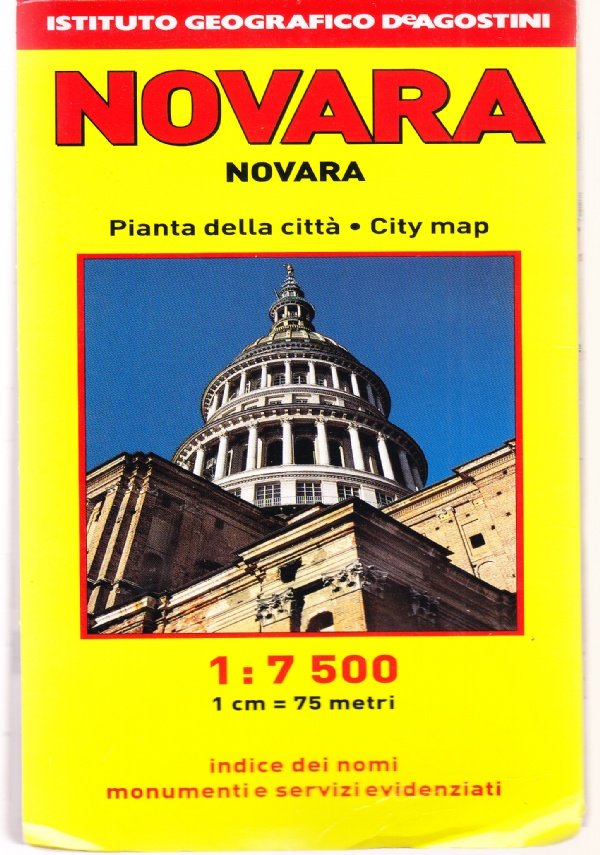 Novara. Pianta della città 1:7500. Indice dei nomi. Monumenti e servizi evidenziati