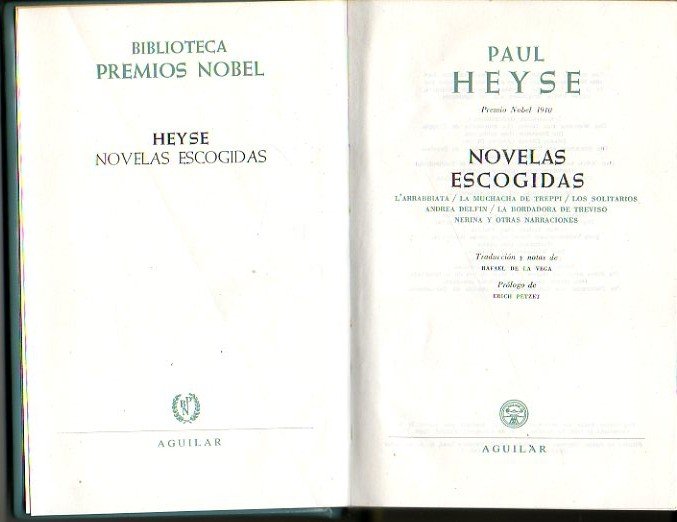 1 Lám. Prólg. E. Petzet. Trad. Y notas, R. De la Vega. Col. Bibliotecas premios nobel. Enc. Guaflex ed.