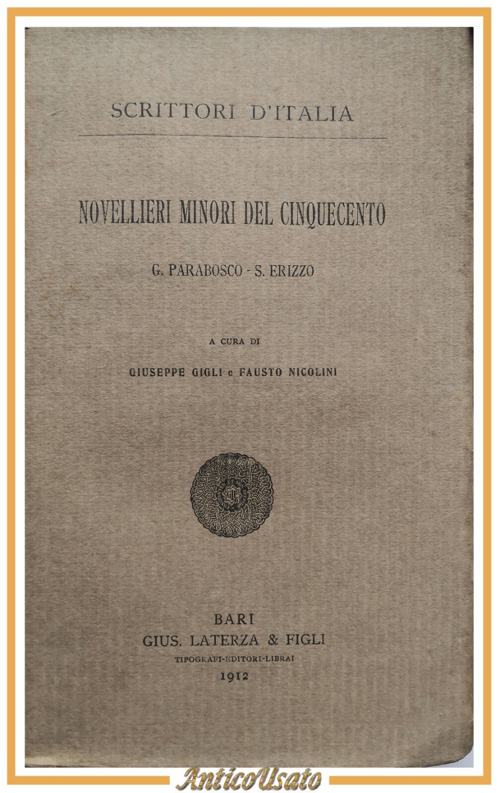 NOVELLIERI MINORI DEL CINQUECENTO di Parabosco e Erizzo 1912 Laterza Libro