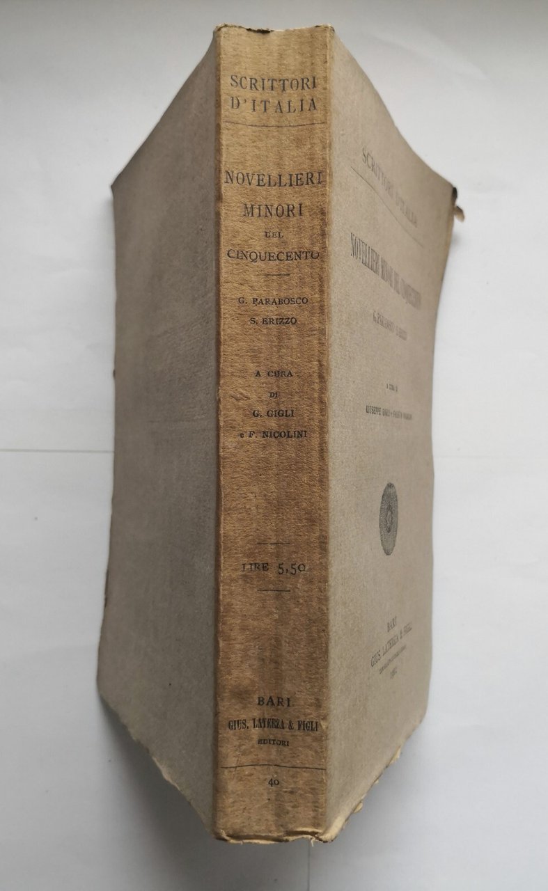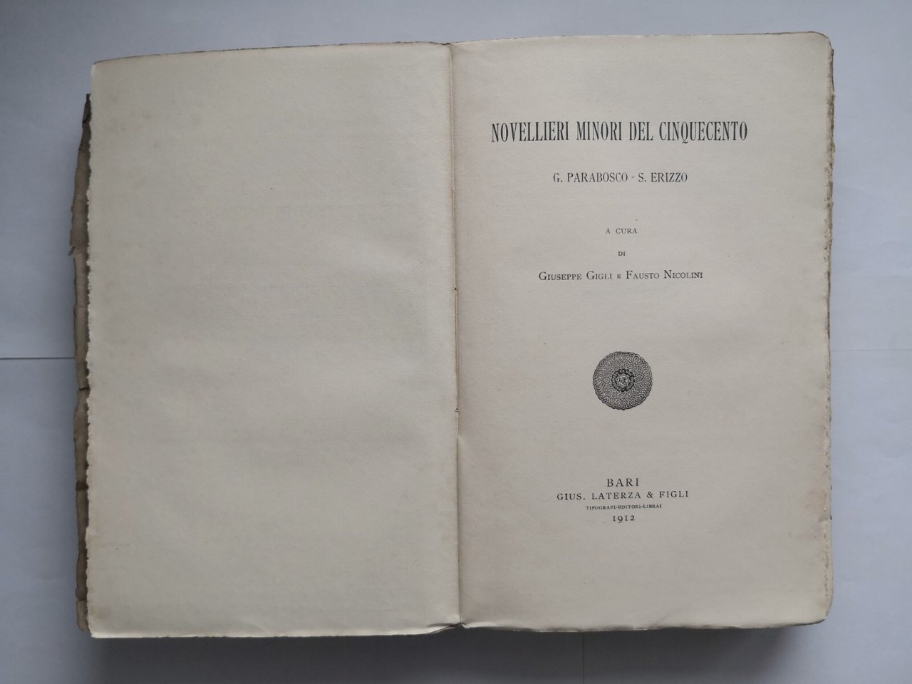 NOVELLIERI MINORI DEL CINQUECENTO di G. Parabosco e S. Erizzo. A cura di Giuseppe Gigli e Fausto Nicolini.