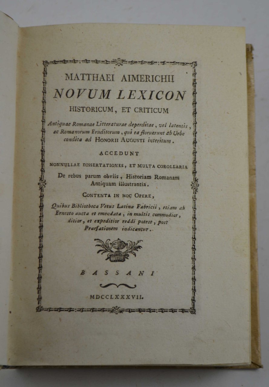 Cm. 19, pp. xl, 370. Solida legatura coeva in piena pergamena rigida con nervi a vista e titoli in oro su tassello al dorso. Esemplare fresco, stampato su carta di ottima qualità ed in perfetto stato di conservazione.