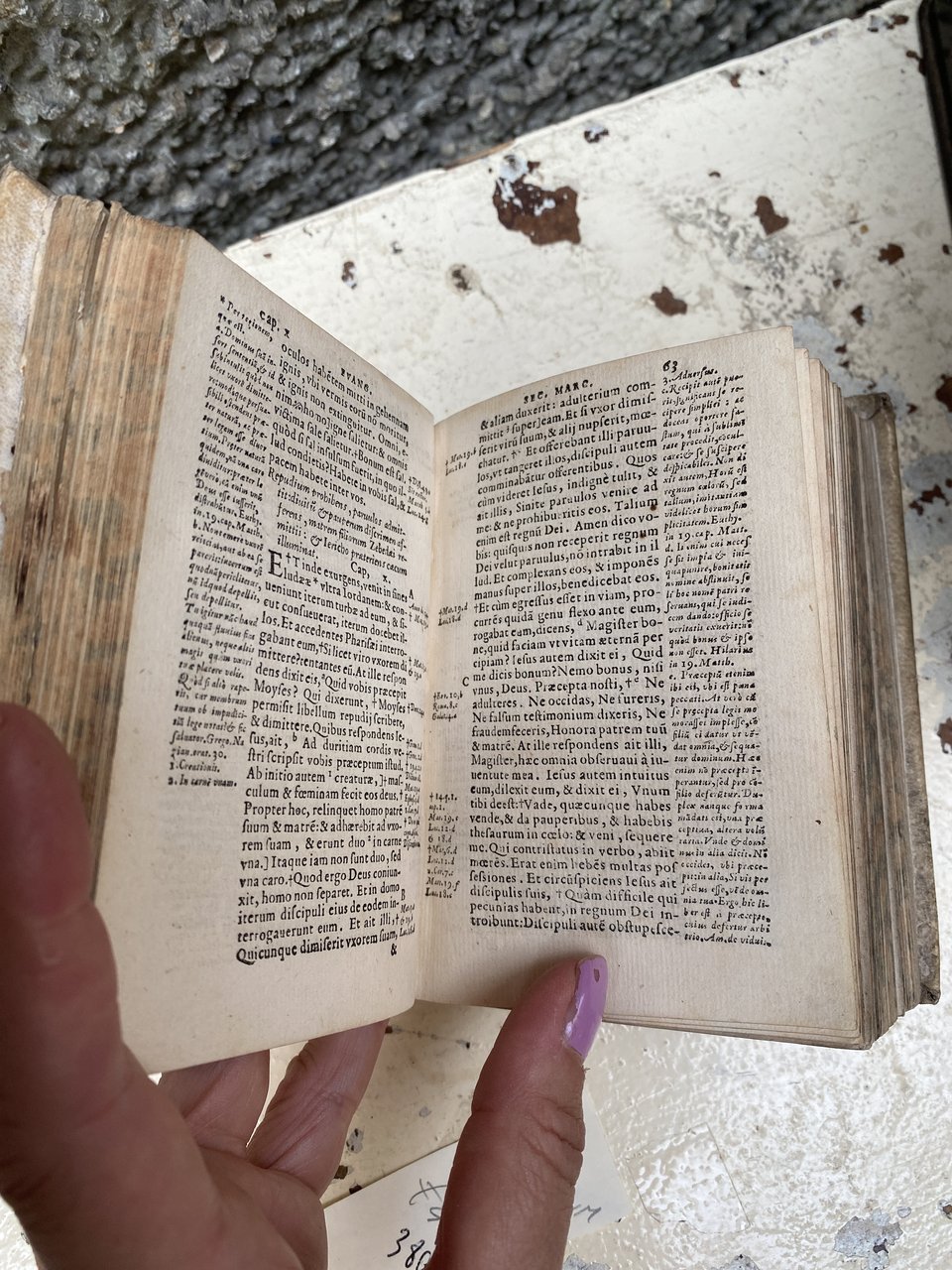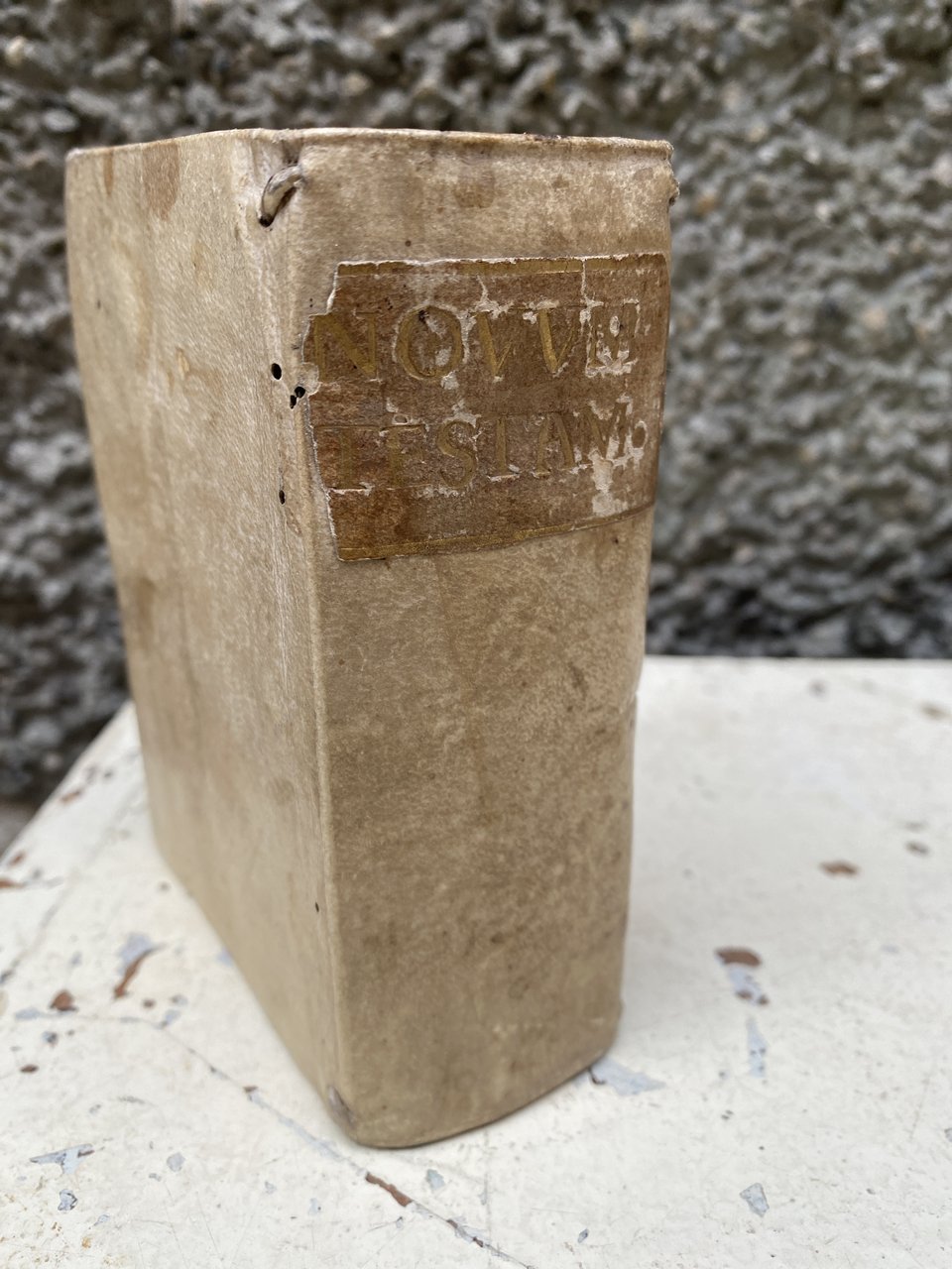 Vol. unico, in -24 (cm. 12x8,5), cc. 36 n.n., 377, 12 n.n., manca guardia iniziale, firma di appartenenza al frontespizio, leg. t. pergamena, tassello ocra a al dorso con titolo in rilievo, tagli marmroizz., pagine croccanti e candide, alcune legg. stropicciate.