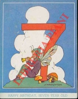 Quattro cartoncini d'auguri per compleanno, 1930 c.a, a colori, apribili, sagomati, ecc. Belli.