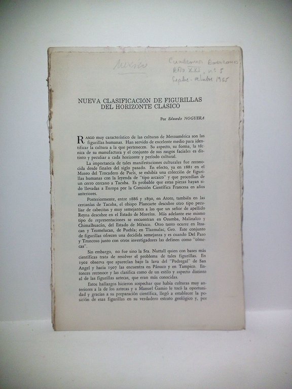 [México]: [Cuadernos Americanos], [1965].- P. 127-158 (en total 32 pags.): Con 12 láminas fotográficas en negro; 4º (24 x 16,3 cm); Cubiertas provisionales.- Desglosado de la Rev. Cuadernos Americanos. Año XXI. Nº 5, Septiembre-Octubre 1965. México.* Al tratarse de un desglose carece de cubiertas y se le han puesto unas provisionales en papel. CULTURAS PRECOLOMBINAS, LENGUAS INDÍGENAS, ETNOGRAFÍA Y FOLKLORE AMERICANOS