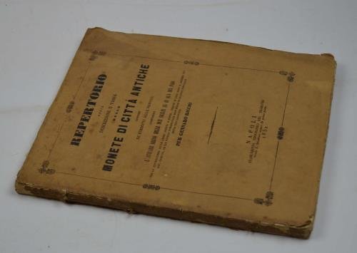 Cm. 27, pp. 117 (3). Con due tavole f.t. raffiguranti varie monete. Bross. orig. d'attesa in carta gialla. Esemplare genuino e marginoso, ben conservato e parz. a fogli chiusi.