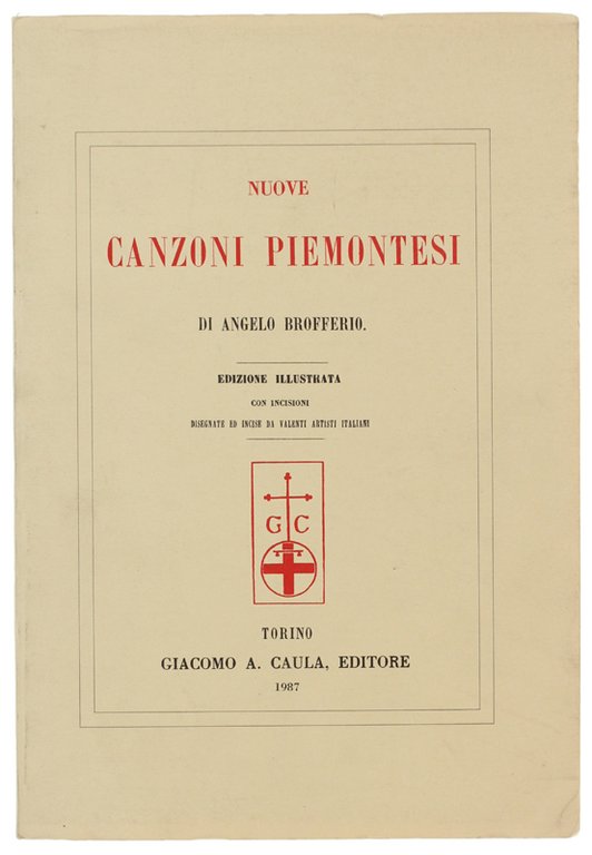 NUOVE CANZONI PIEMONTESI di Angelo Brofferio. Edizione illustrata con incisioni disegnate ed incise da valenti artisti italiani