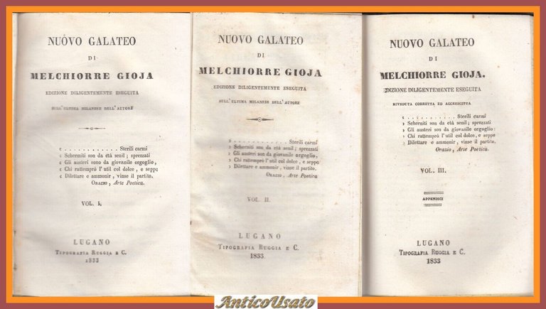 NUOVO GALATEO di Melchiorre Gioja 3 volumi completo 1833 libro antico Gioia